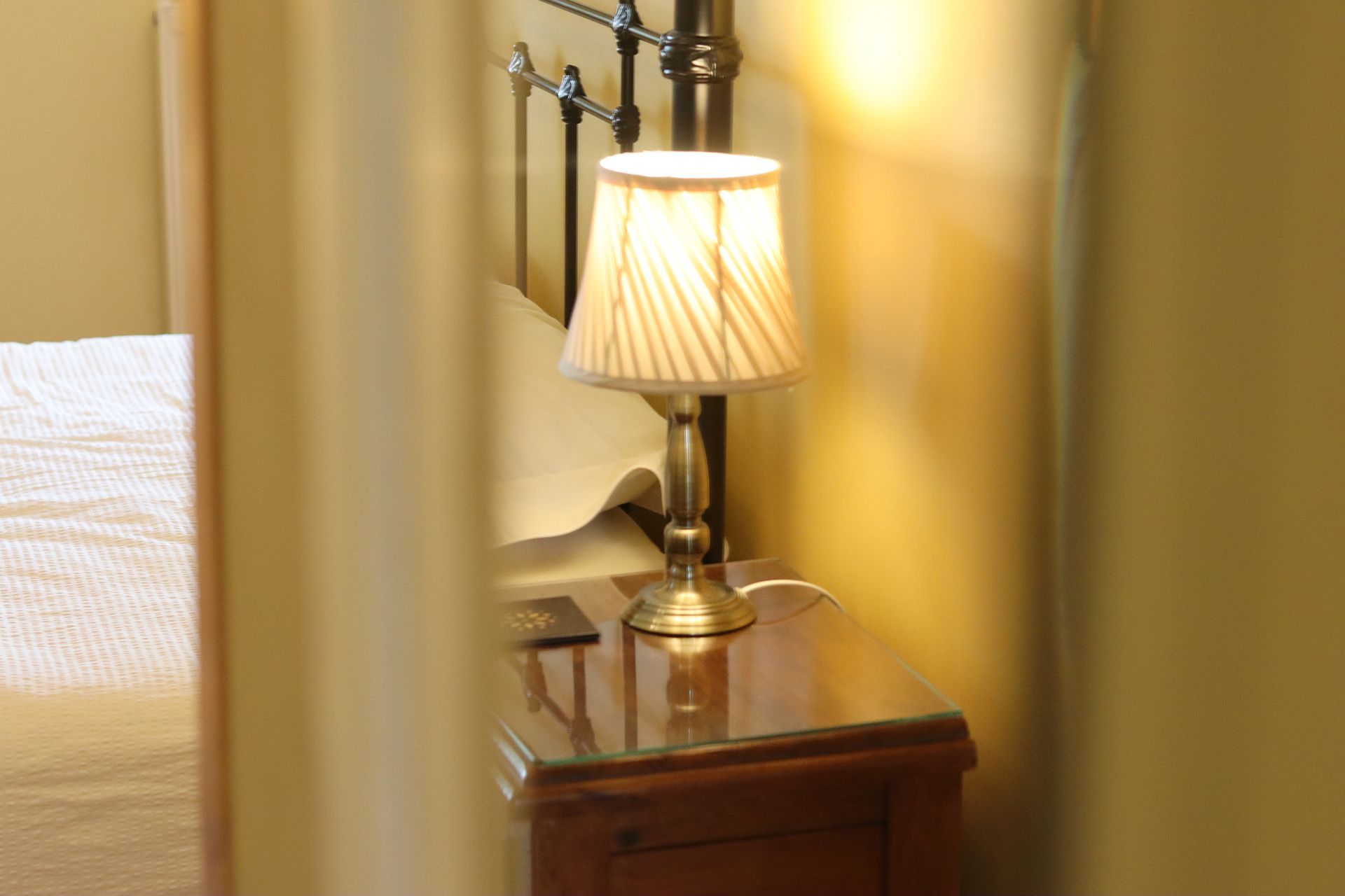 the spacious king-size bedroom feels light and airy with its vaulted ceiling and plenty of storage for your things. The en-suite bathroom has been recently refurbished and comes with a full-sized bath and a powerful shower — perfect for a relaxing soak after a day exploring. We’ve chosen soft cotton bedding, fluffy bath-sheet towels, and complimentary toiletries to make your stay as relaxing as possible.